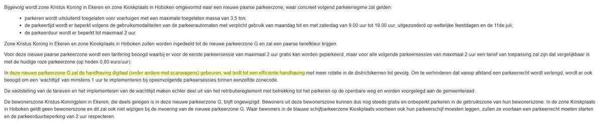 In Hoboken- en Ekeren-centrum werkt men voorlopig met de parkeerschijf, maar die moeten fysiek gecontroleerd worden. Door het via de scanwagens te doen komt men tot een “efficiëntere handhaving", zo staat er te lezen. Het staat er dus zwart op wit: door scanwagens te laten rondrijden, kunnen we meer boetes ophalen.